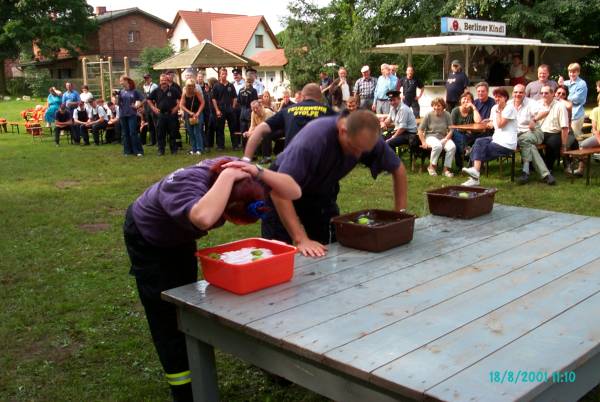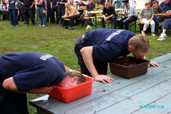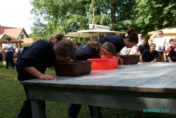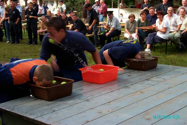 Einen Apfel mit dem Munde aufnehmen und ins Ziel tragen war die Aufgabe...